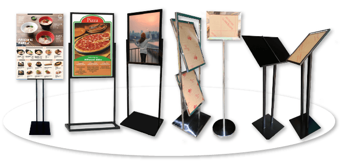 ขาตั้งป้ายโปสเตอร์สแตนด์ ป้ายประชาสัมพันธ์ ป้ายโฆษณา ต่างๆตามต้องการ โดดเด่นสวยงามมีสไตล์แตกต่างไม่เหมือนใครป้ายโปสเตอร์สแตนด์ ป้ายโปสเตอร์สแตนเลส ป้ายโปสเตอร์อลูมิเนียม ป้ายเมนูสแตนด์ ชั้นวางโบว์ชัวร์ ป๊อบอัพ ป้ายโปสเตอร์ติดผนัง โต๊ะเคาน์เตอร์ และวีแตนด์